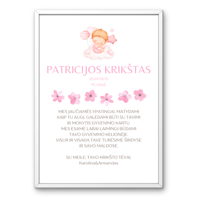 Esu sužavėta gautu paveikslu! Tai buvo puiki dovana mano krikšto dukrytei. Kiekviena detalė apgalvota, spalvos, žodžiai, jausmingumas užburia, jis spinduliuoja meilę bei rūpestingumą. Tai – tikras, įprasminantis simbolis, kurį branginsime visą gyvenimą. Ačiū!